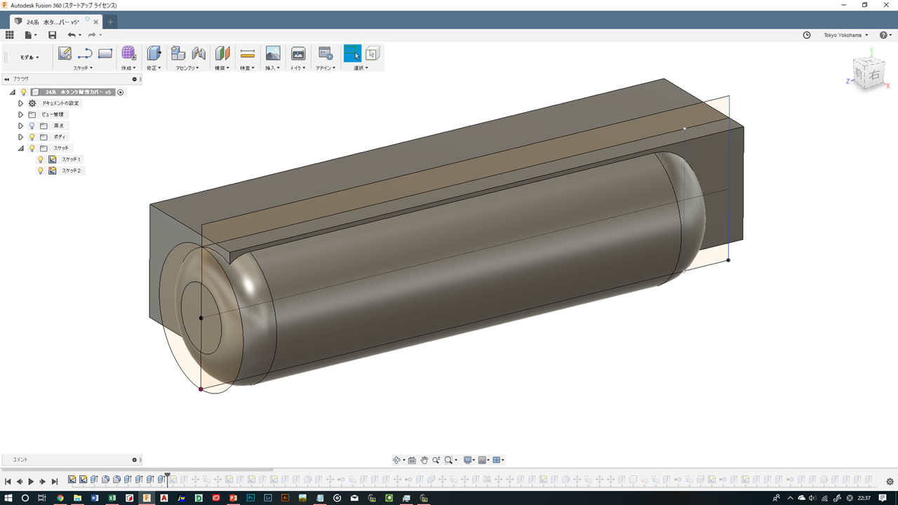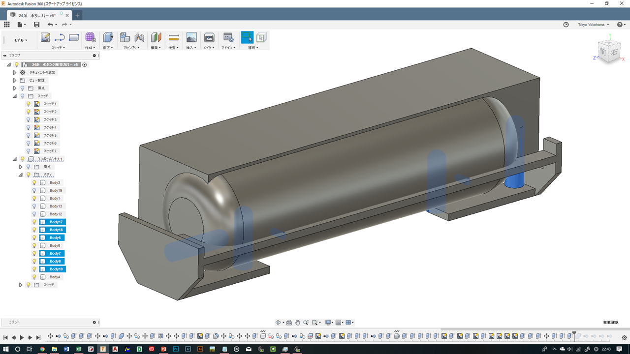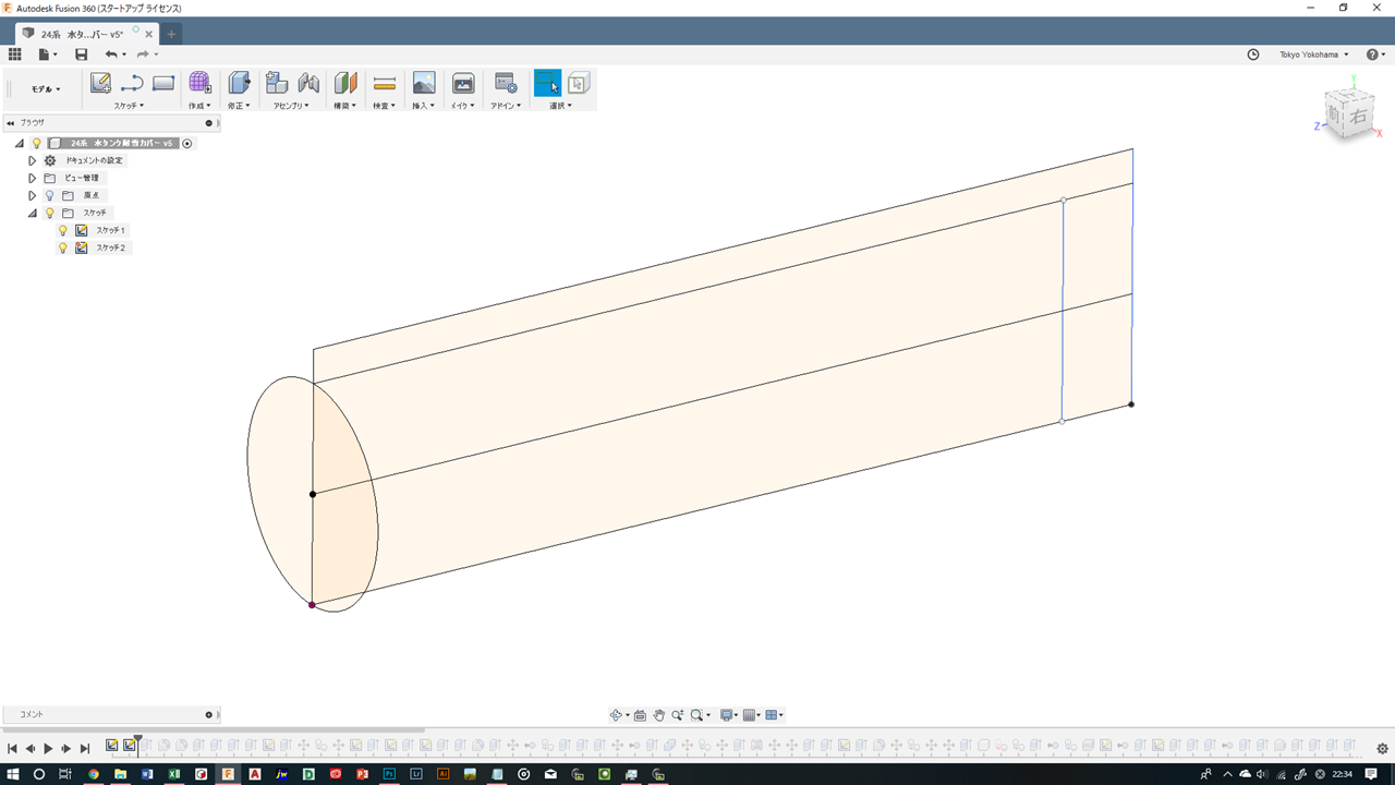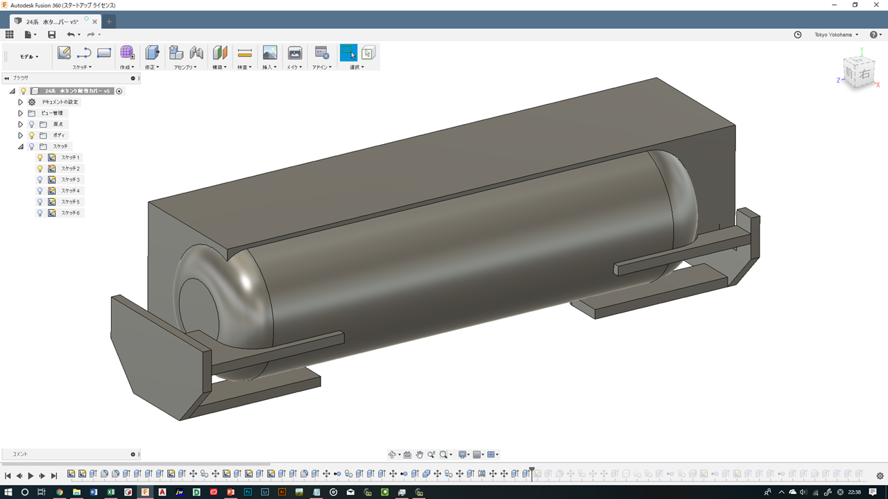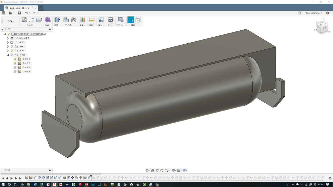 外形寸法を採寸したら3DCAD上にスケッチして水タンクを再現します。