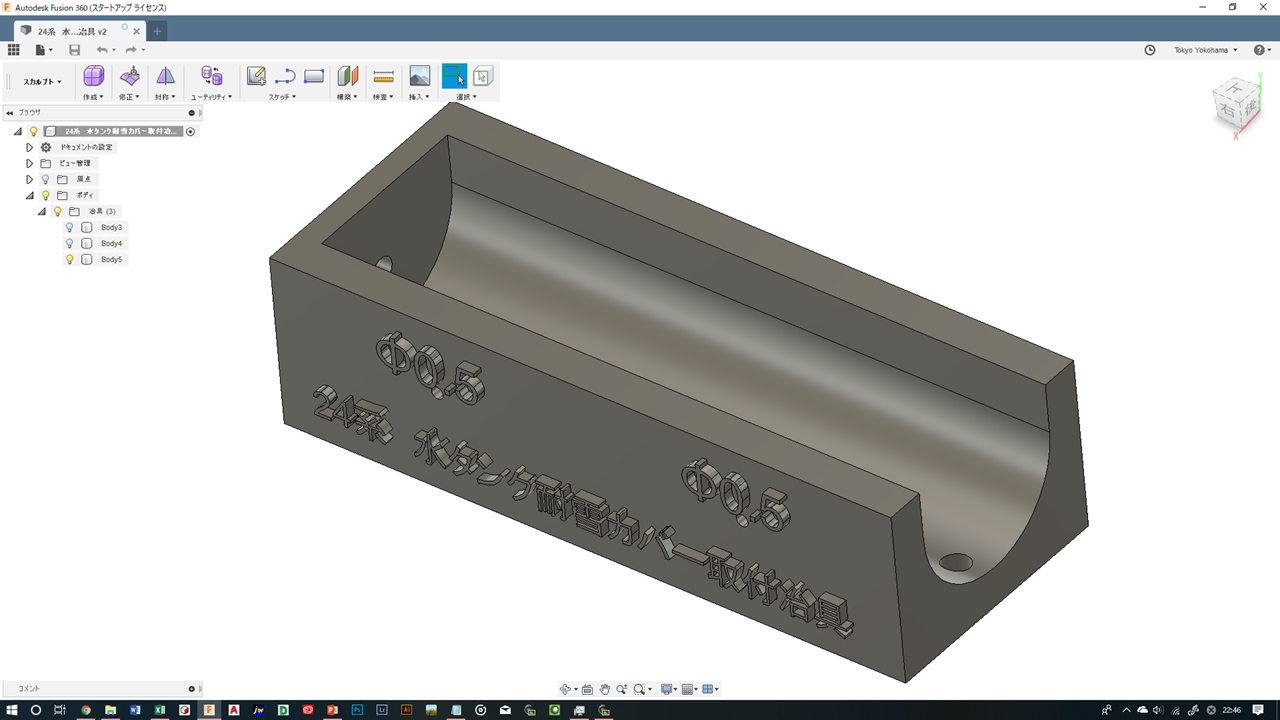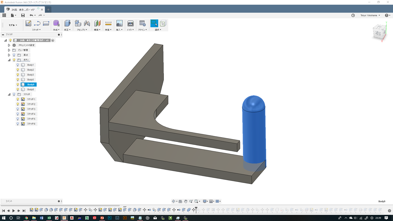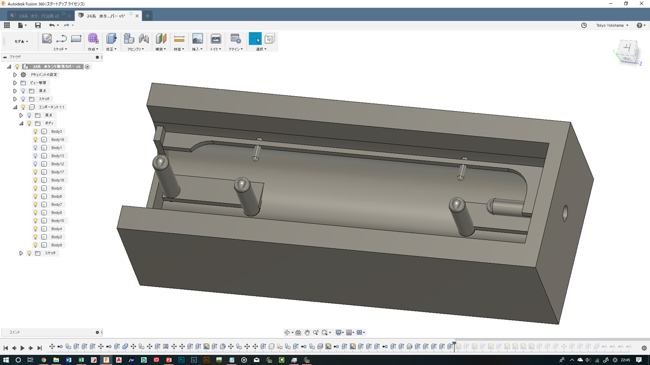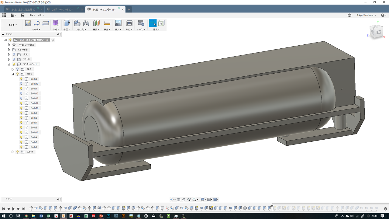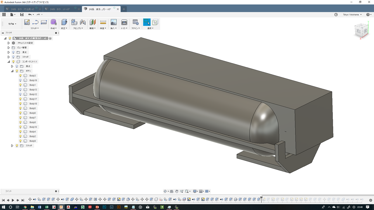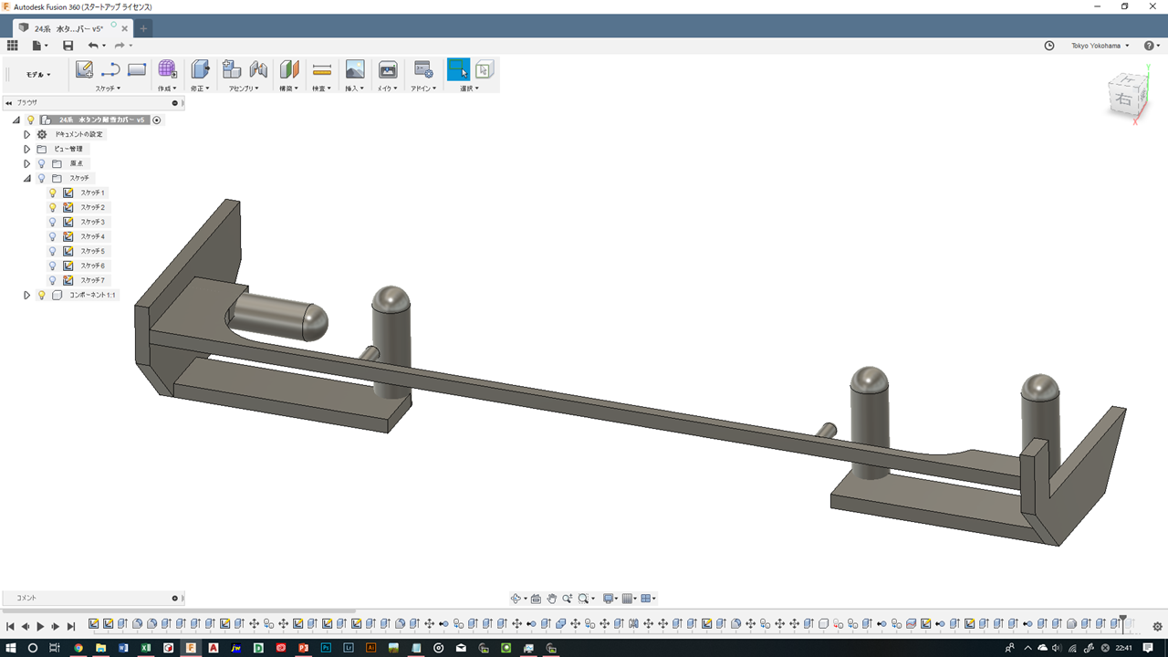 外形寸法を採寸したら3DCAD上にスケッチして水タンクを再現します。