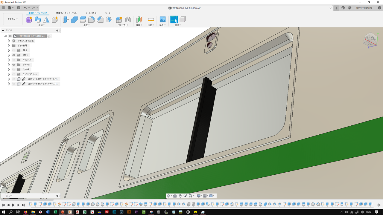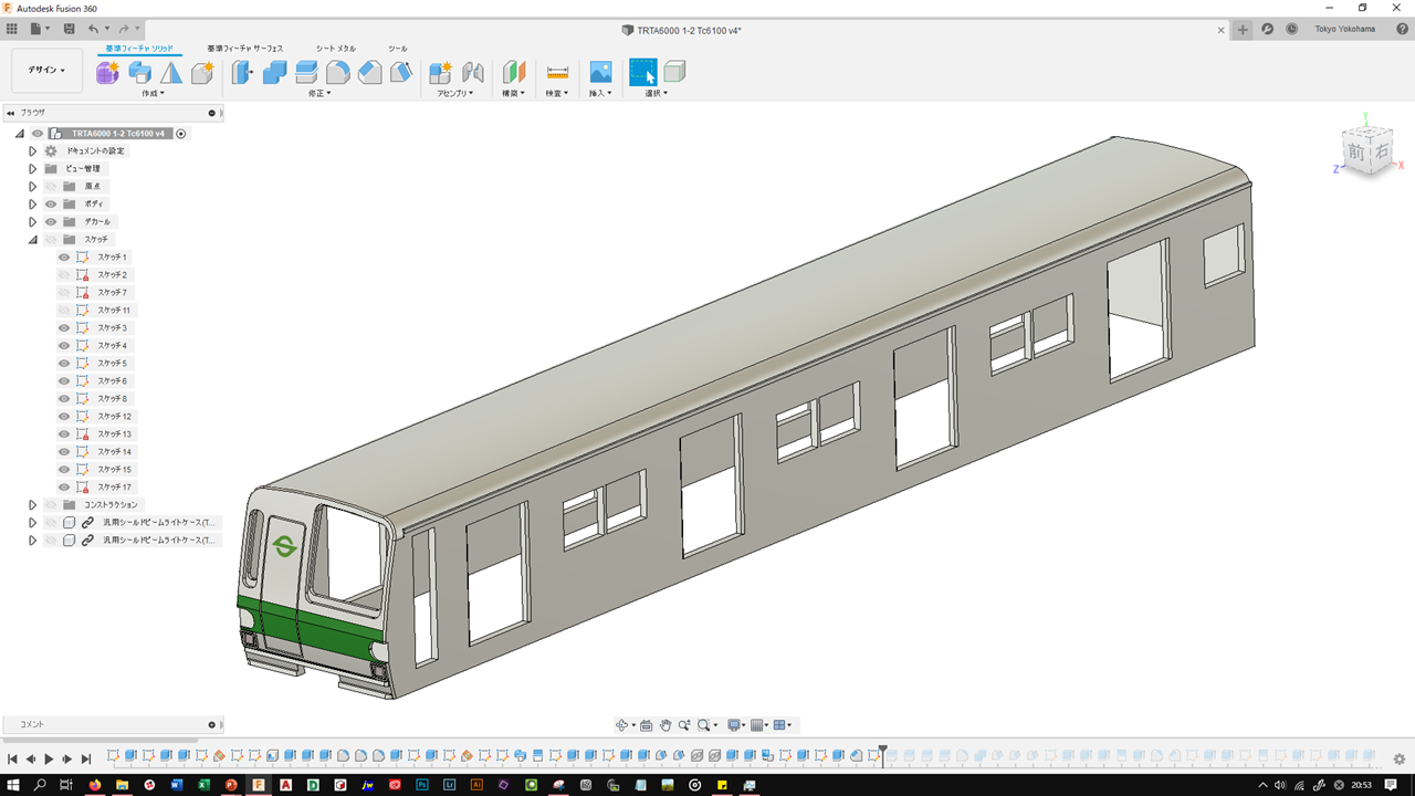 一通りスケッチし終わったらソリッドで立体にし、必要箇所を抜いていきます。