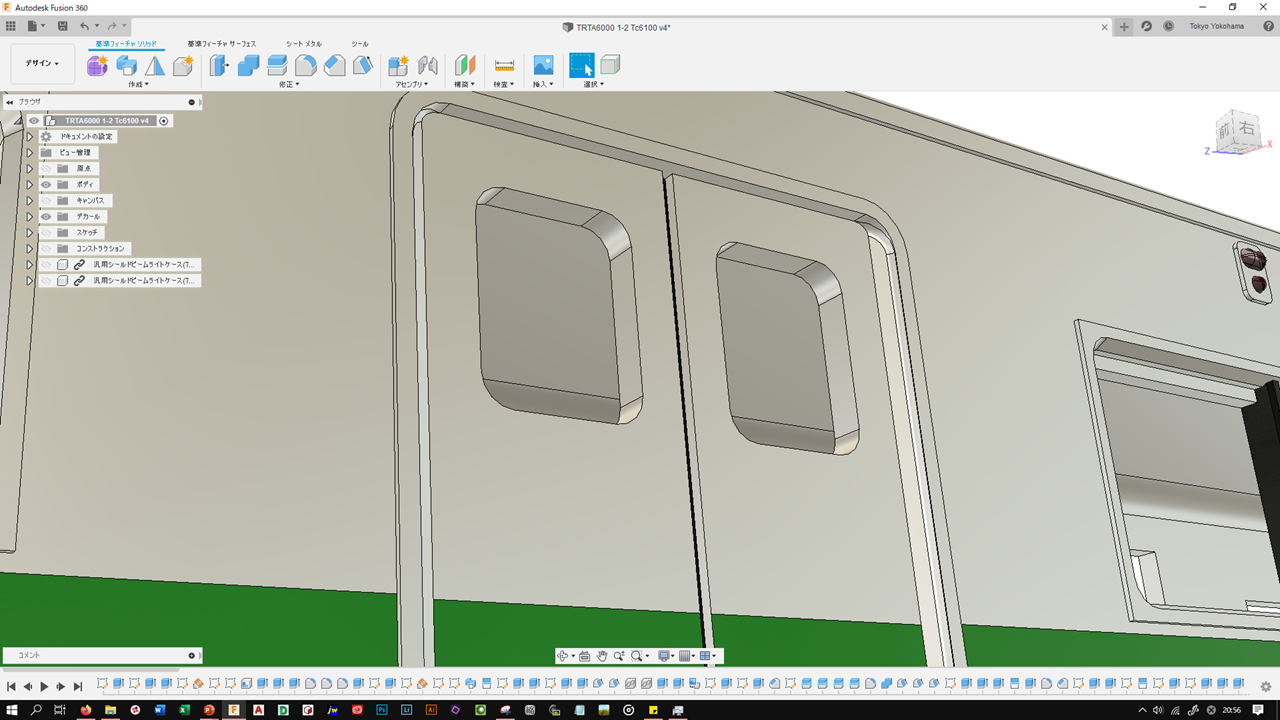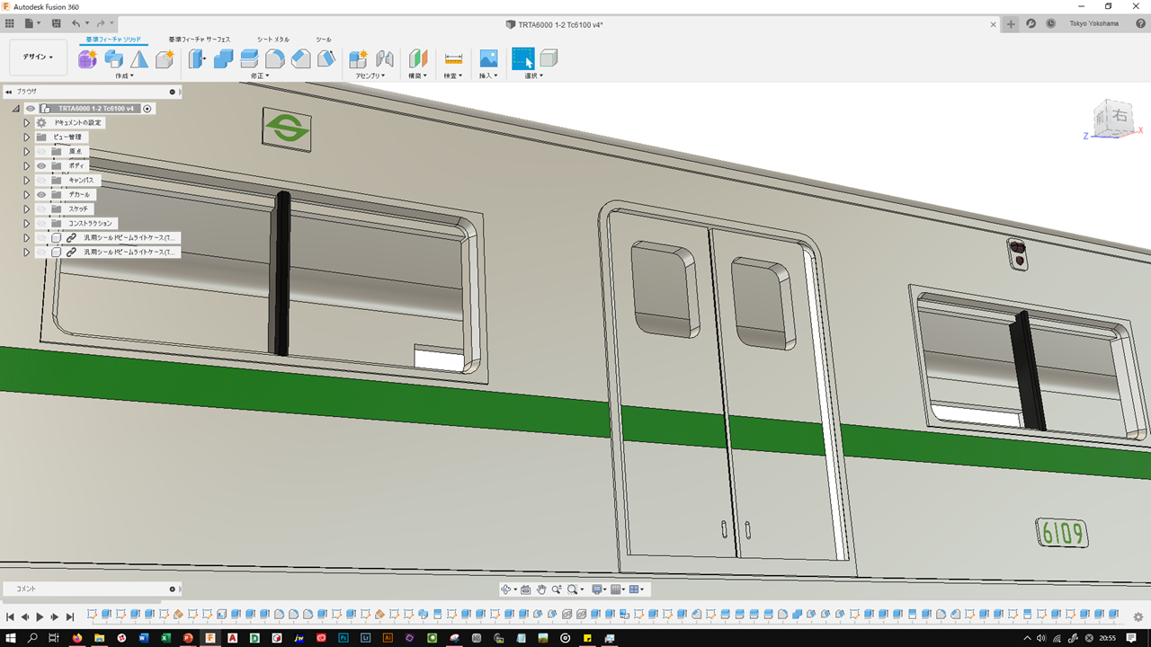 例えば、3枚目に映っている客扉枠の上部Rなどはこの場合Rが緩すぎて実車と比べると全然違っていたりします。
