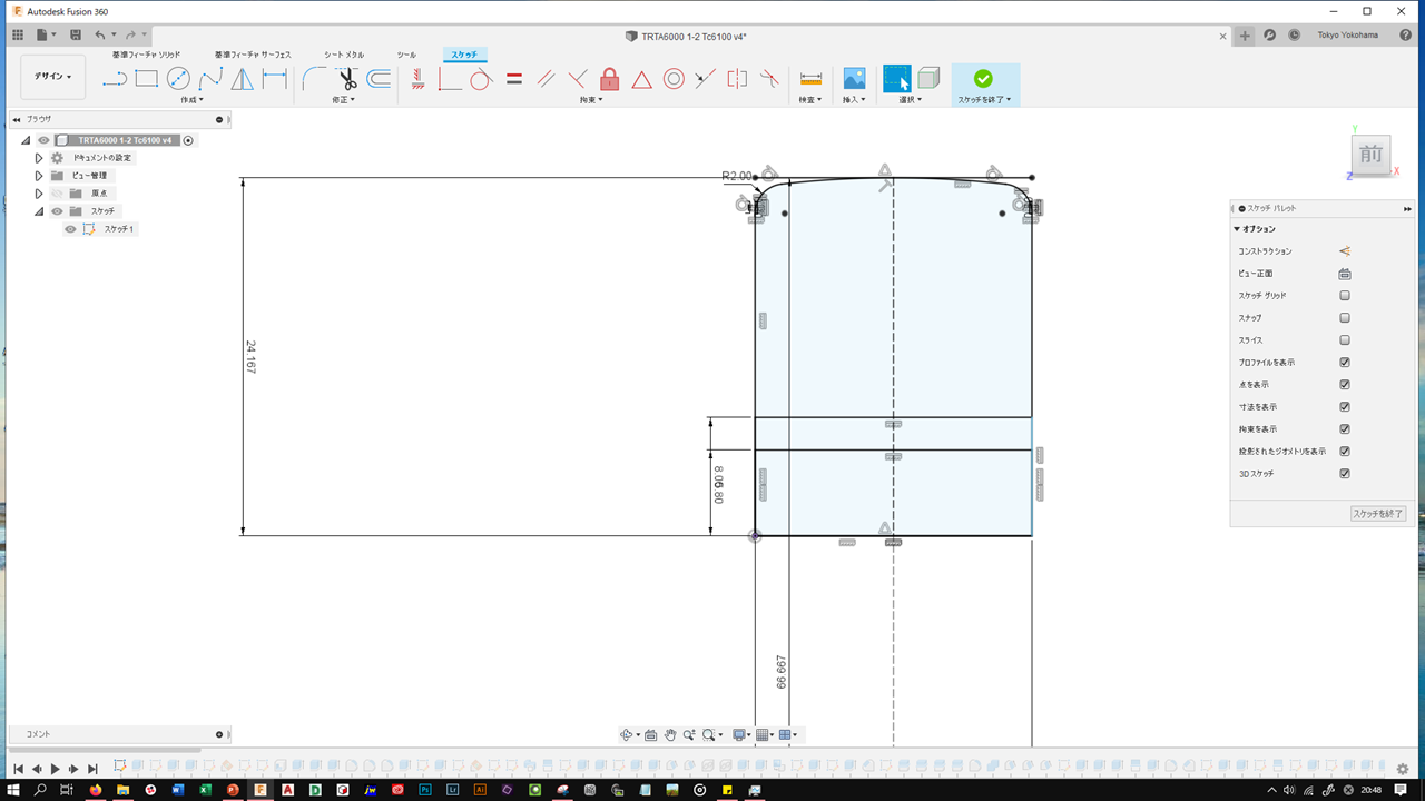 屋根Rもそうですが、Rを描く曲面は、図面に半径指定があれば"中心線円弧"を使って描きます。