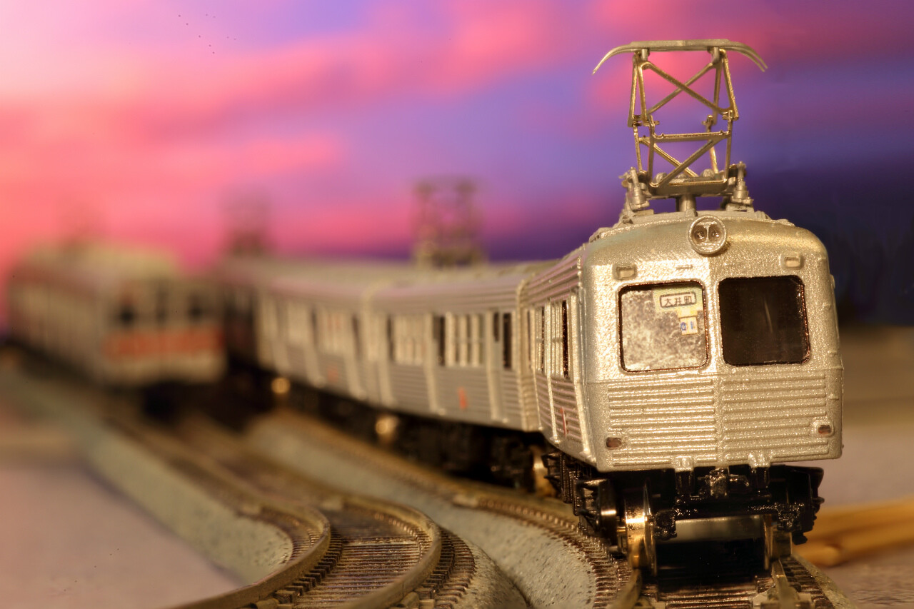 この頃になると、被写界深度合成を使って後ろまでピントを合うように工夫したり、架線柱を立てたり、列車接近表示器を置いたりと”らしく”なる工夫をしていますね。