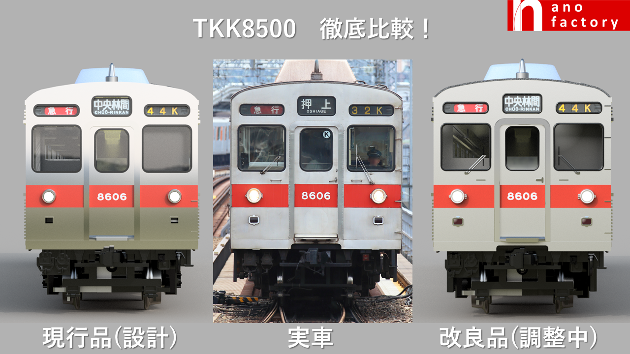 nano factoryブランドより発売されておりますTKK8500系シリーズの3Dプリントキットですが、オリジナルに近い姿で残存していた8606Fが先日ついに廃車となりまして、その勇退を記念して8500系をオールリニューアルすることが決定されました!