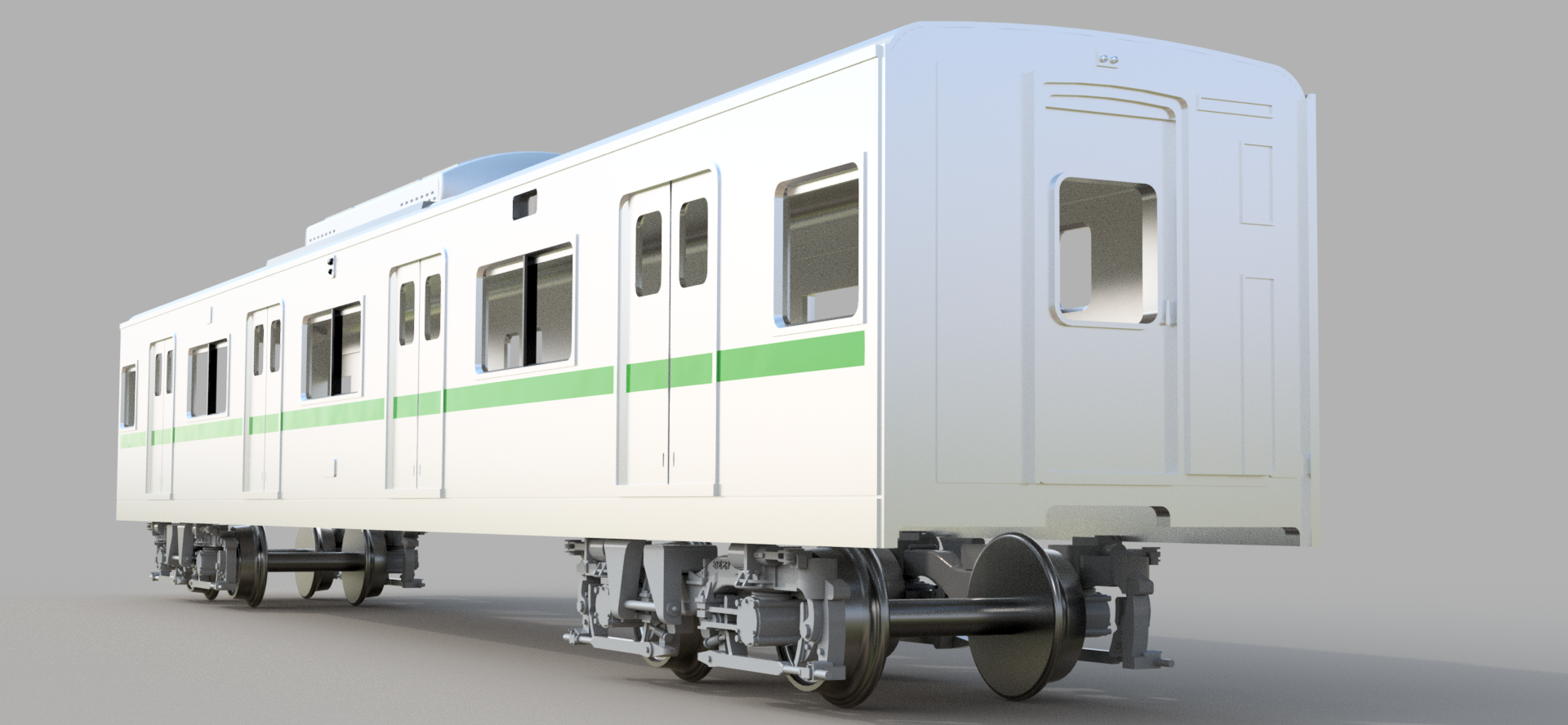 8000系の特徴の一つであるボルスタレス台車は後ほど設計いたします。