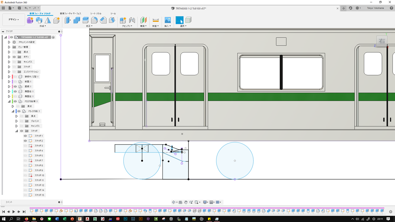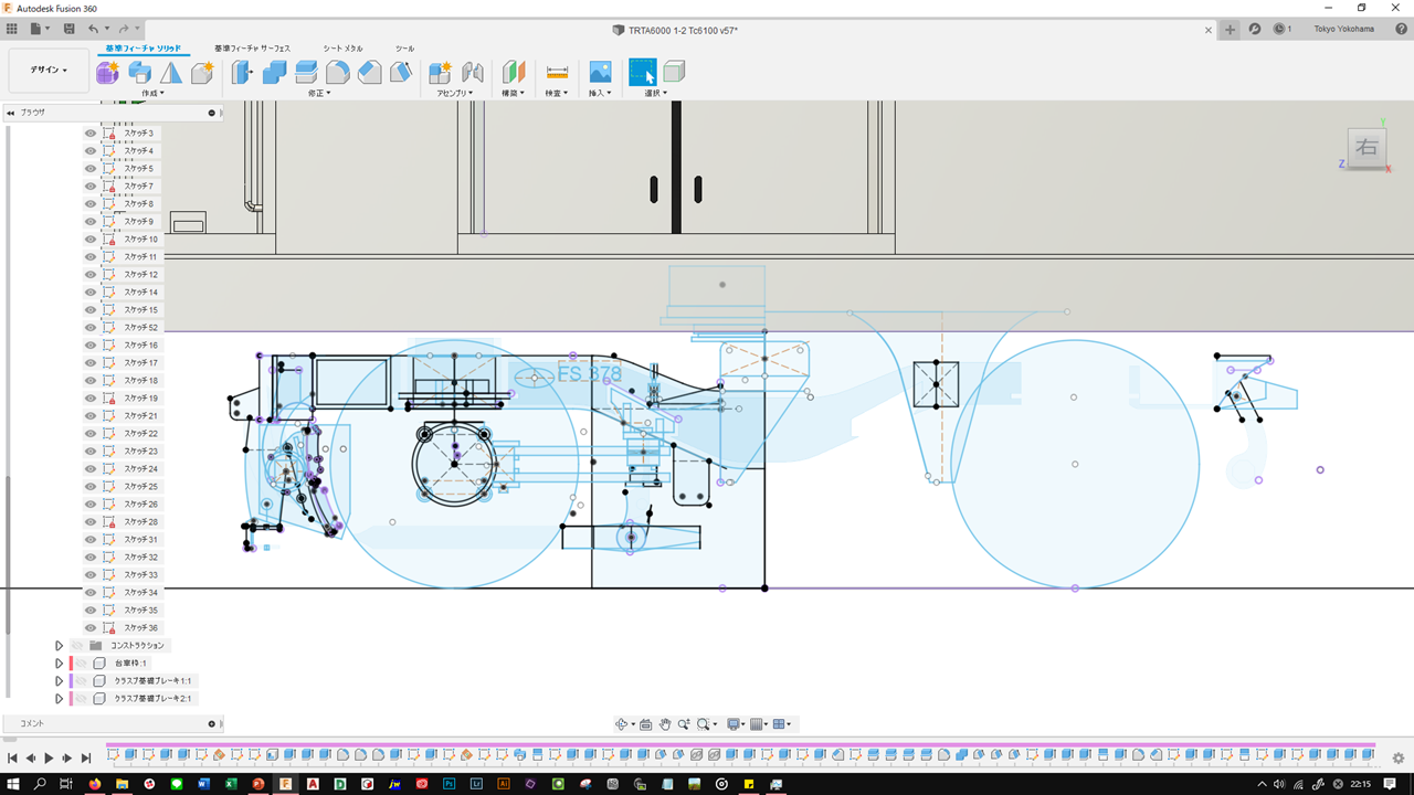 他の台車同様、図面や真横からの投影写真をキャンバスに設定しスケッチしていきます。