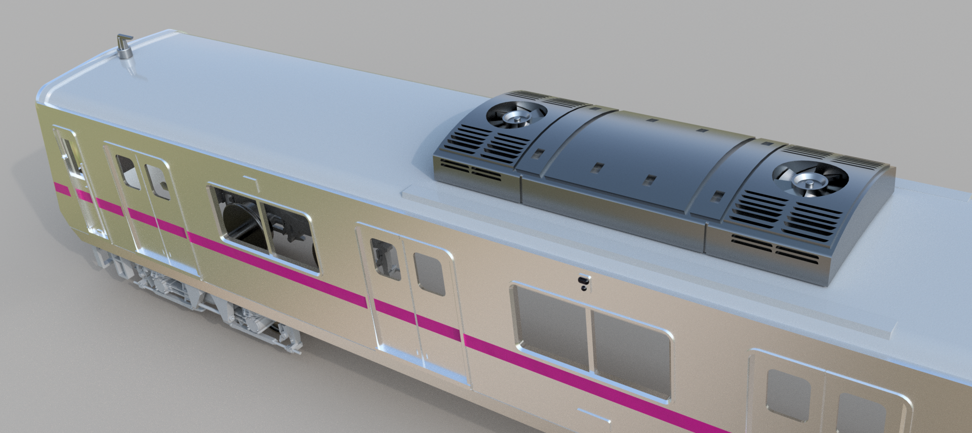 設計済みの丸型断面のクーラーは8000系で採用例が無く、新たに作りました。
