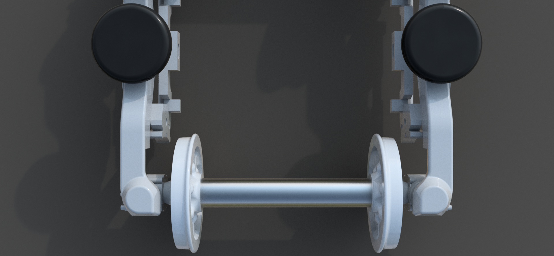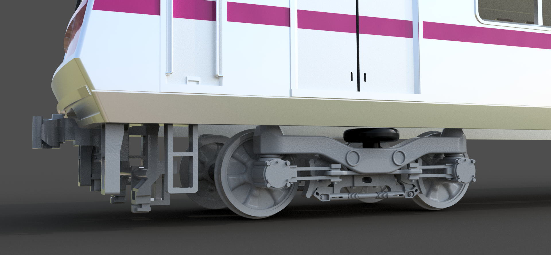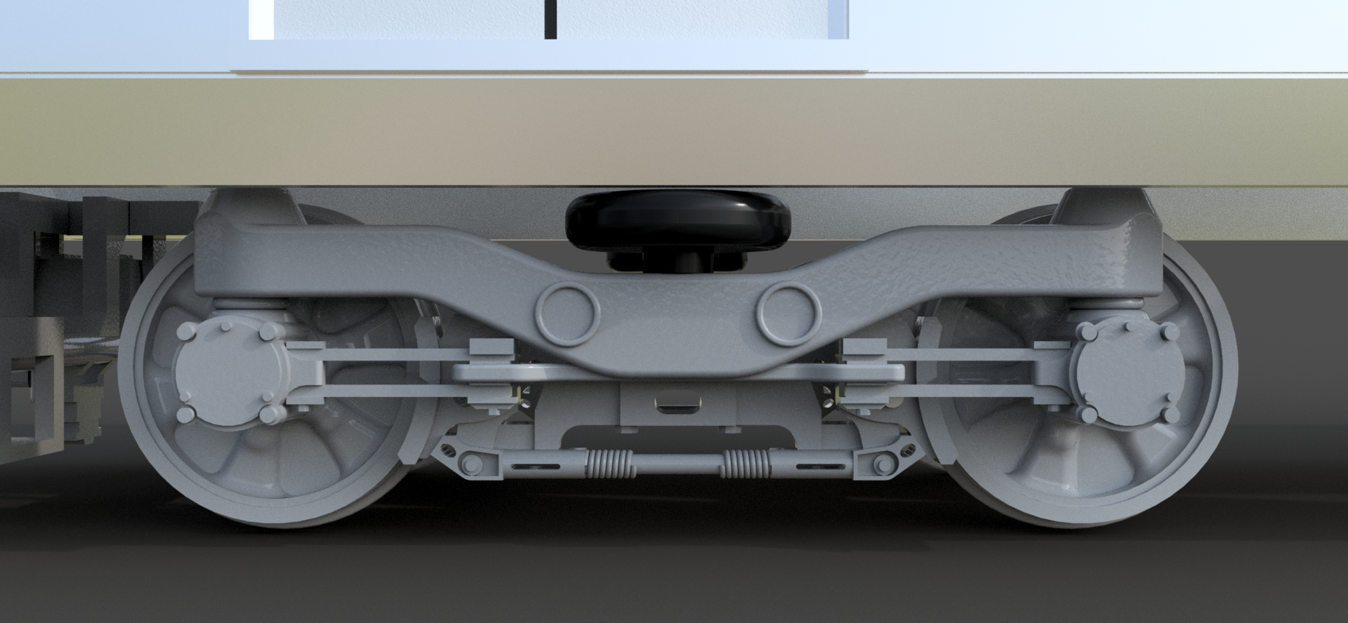 同様に特徴的な空気ばねも、実車に倣って側梁中心から真円で描くと余裕でボディからはみ出てしまいます。これも側梁が実車より外に寄ってしまうためですね。