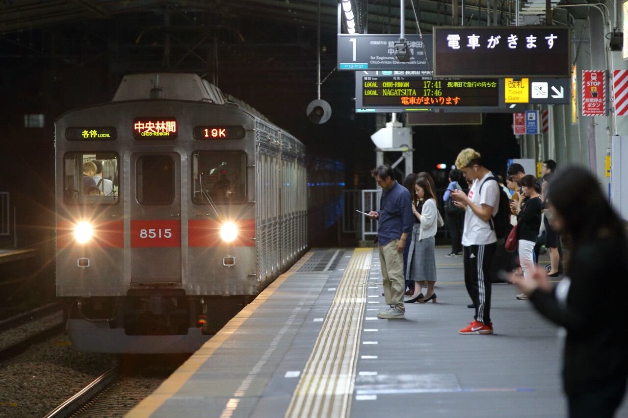この階段に腰掛けて8500系はじめ田園都市線の電車を眺めることができます。